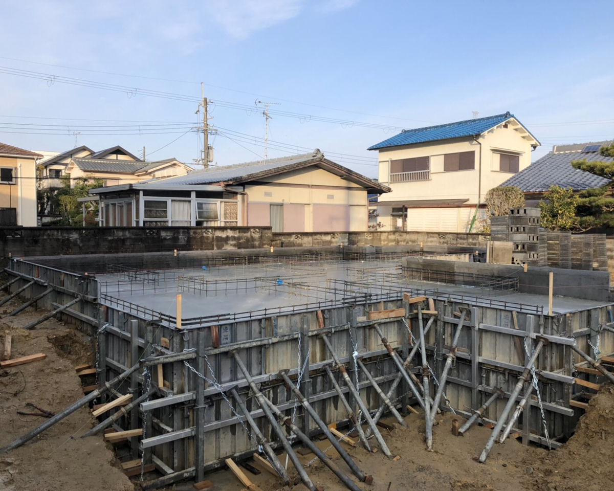 夢のマイホームづくり。そんな家づくりで最も重要となるのが、基礎部分です。基礎部分は住宅そのものを支える土台のため、強度に大きく関係しています。家を建てたら大部分が見えなくなってしまいますが、正確、丁寧な施工で、土台からお客様の安全な暮らしを支えます。